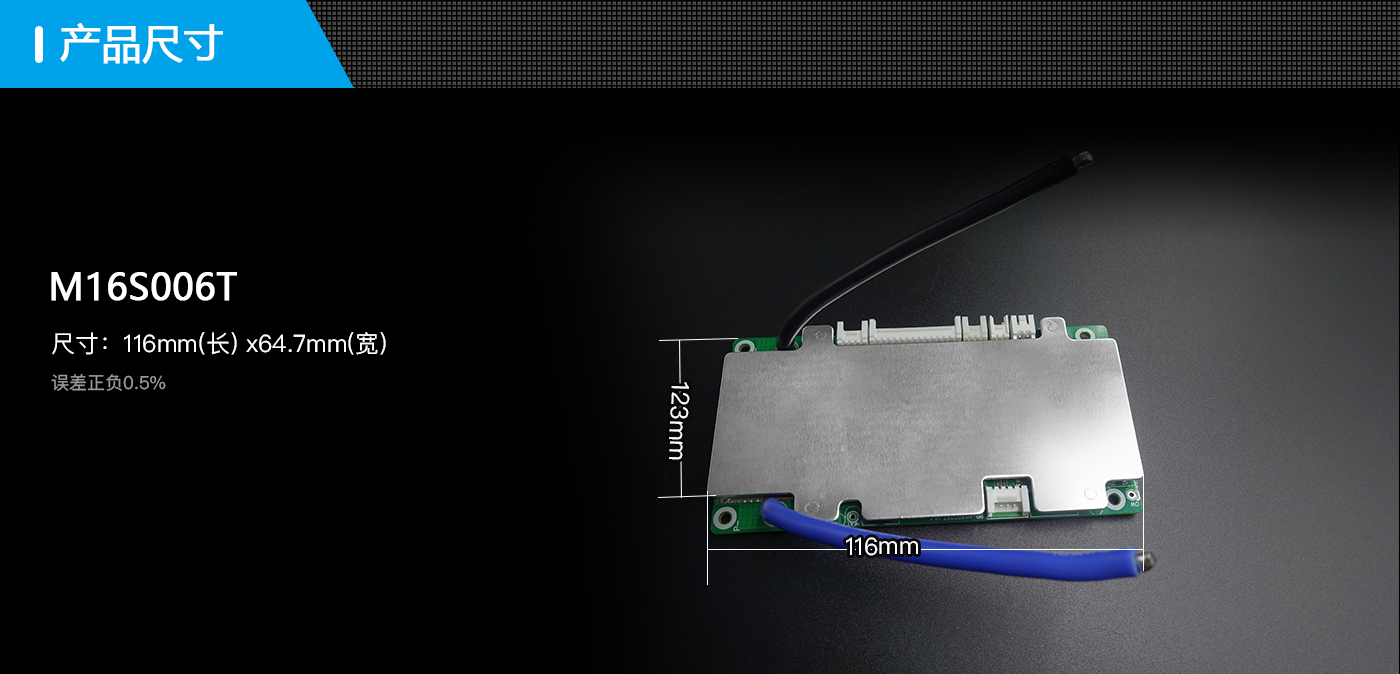河馬M16S006T是我司專門針對動力電池 9~16串電池包而設計的保護板方案;可適用不同 化學性質的鋰電芯,如鋰離子、鋰聚合物、磷酸鐵鋰等。此保護板帶載能力強,最大持續(xù)電流可達50A。